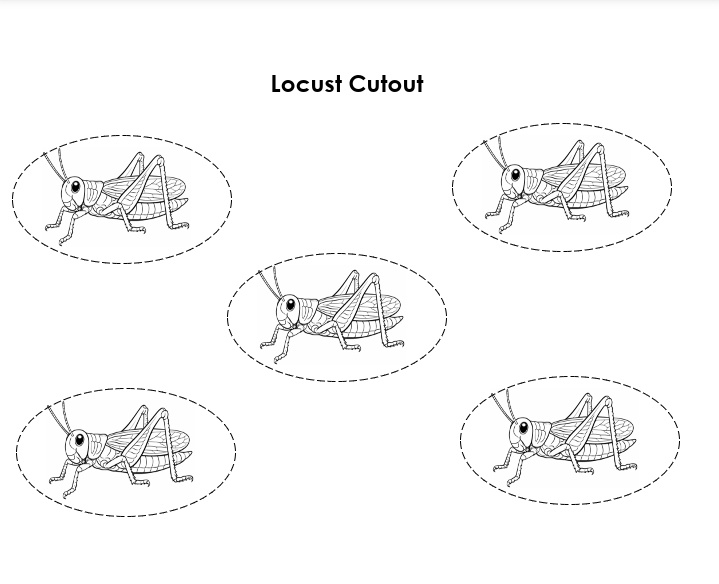 For locusts, draw or cut out locusts to cover fields or gardens.